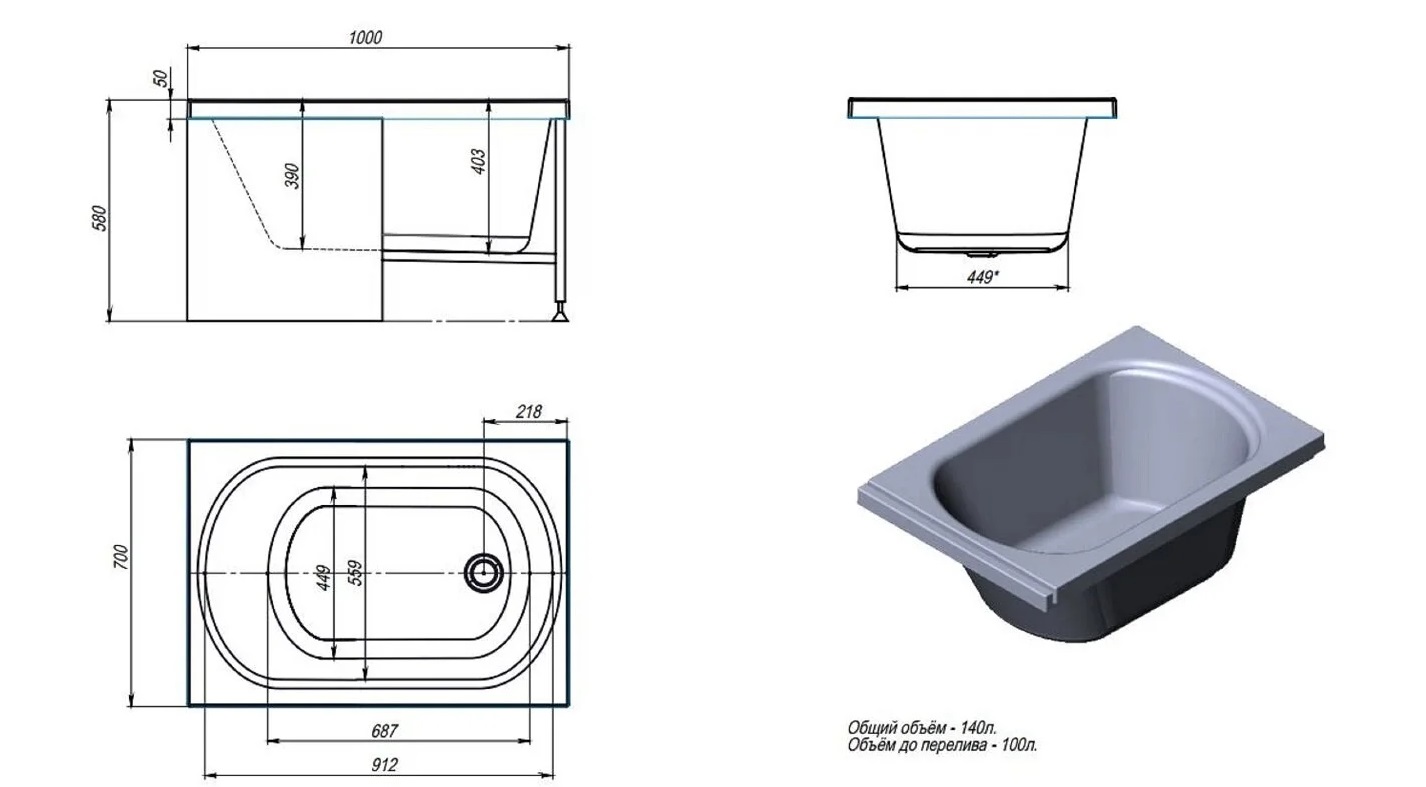 Акриловая ванна Alex Baitler Baikal 100x70 |