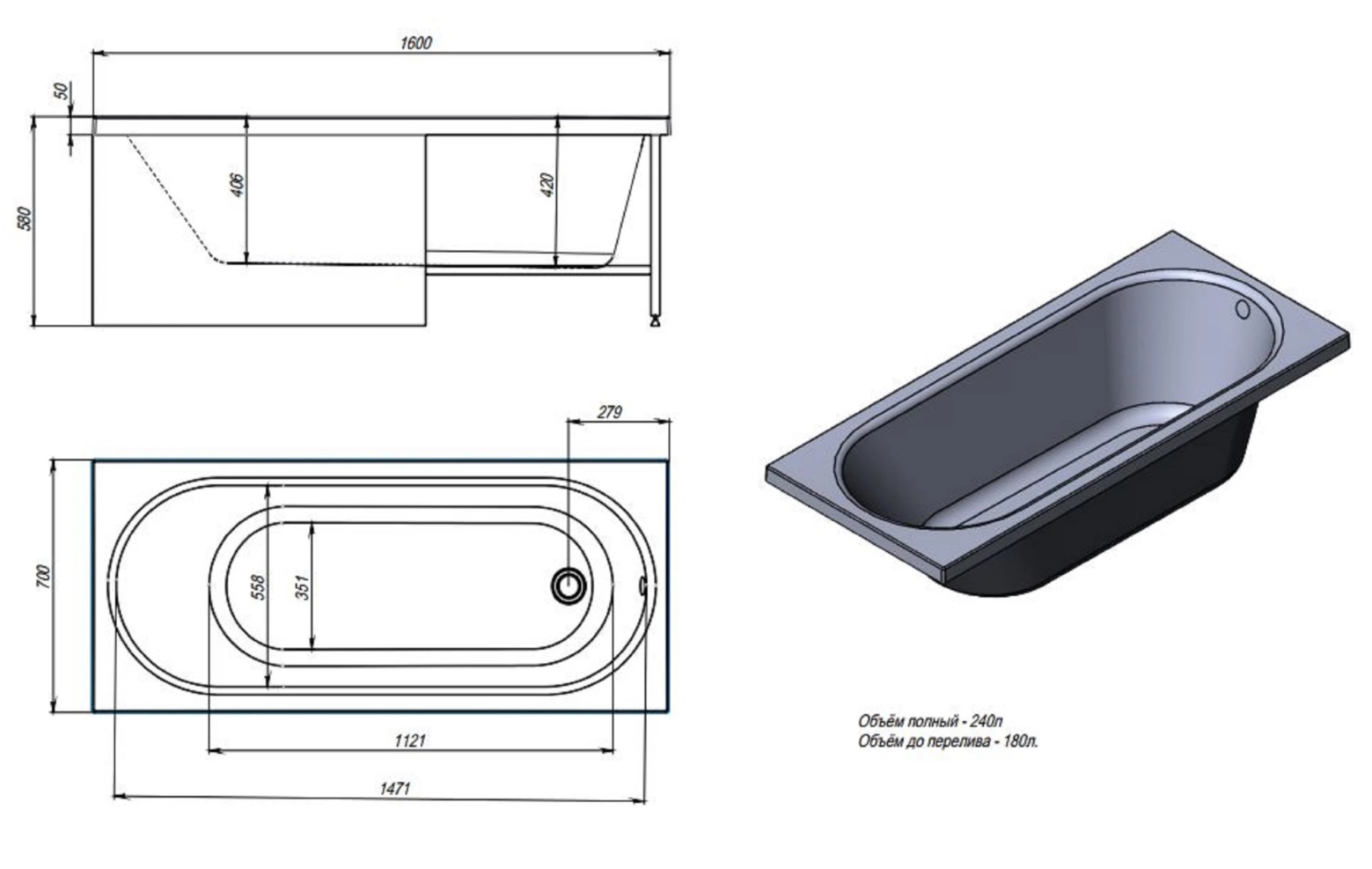 Акриловая ванна Alex Baitler Baikal 160x70 |