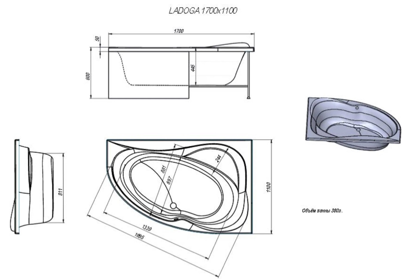 Акриловая ванна Alex Baitler Ladoga 170x110 R