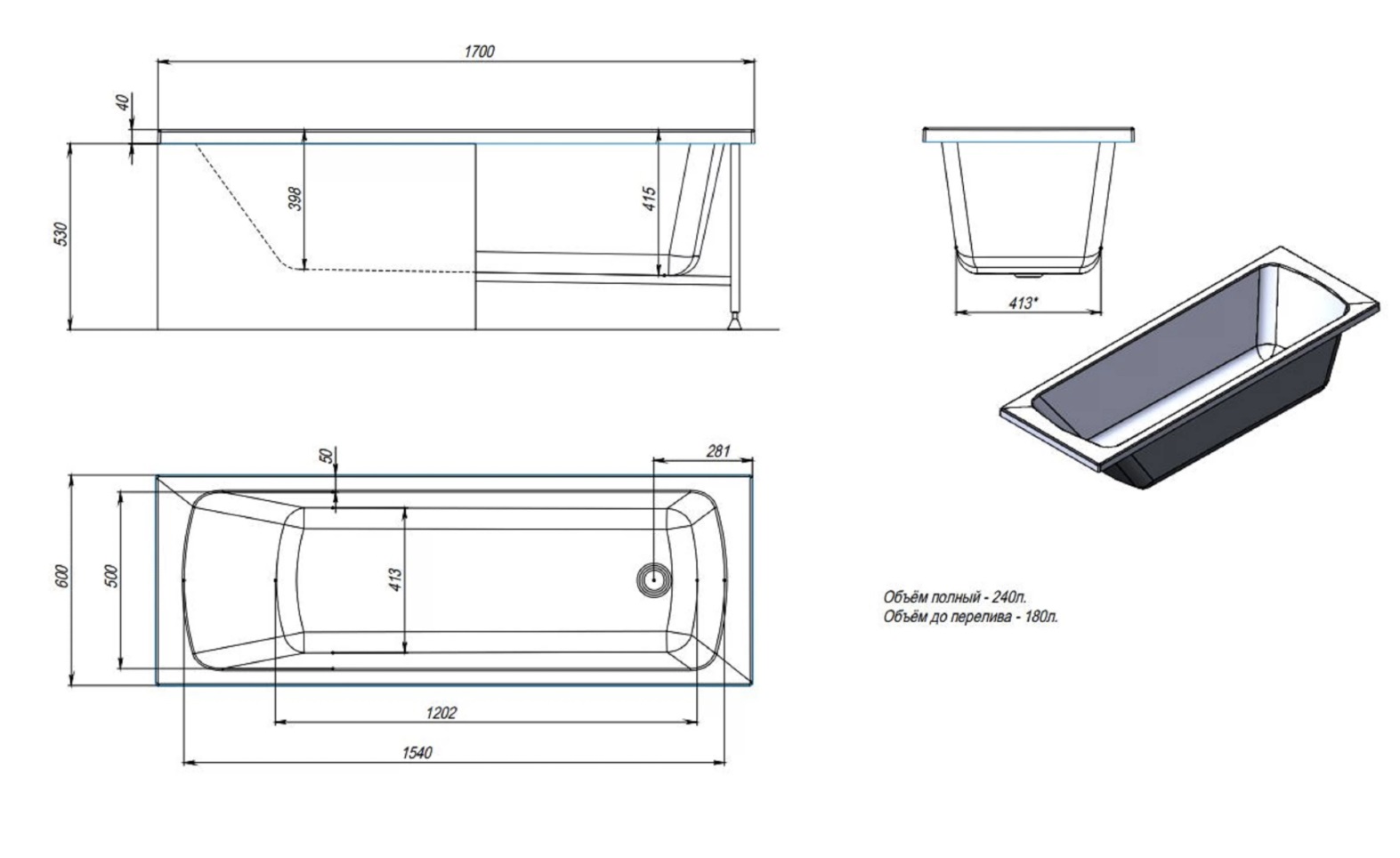 Акриловая ванна Alex Baitler Onega 170x60 |
