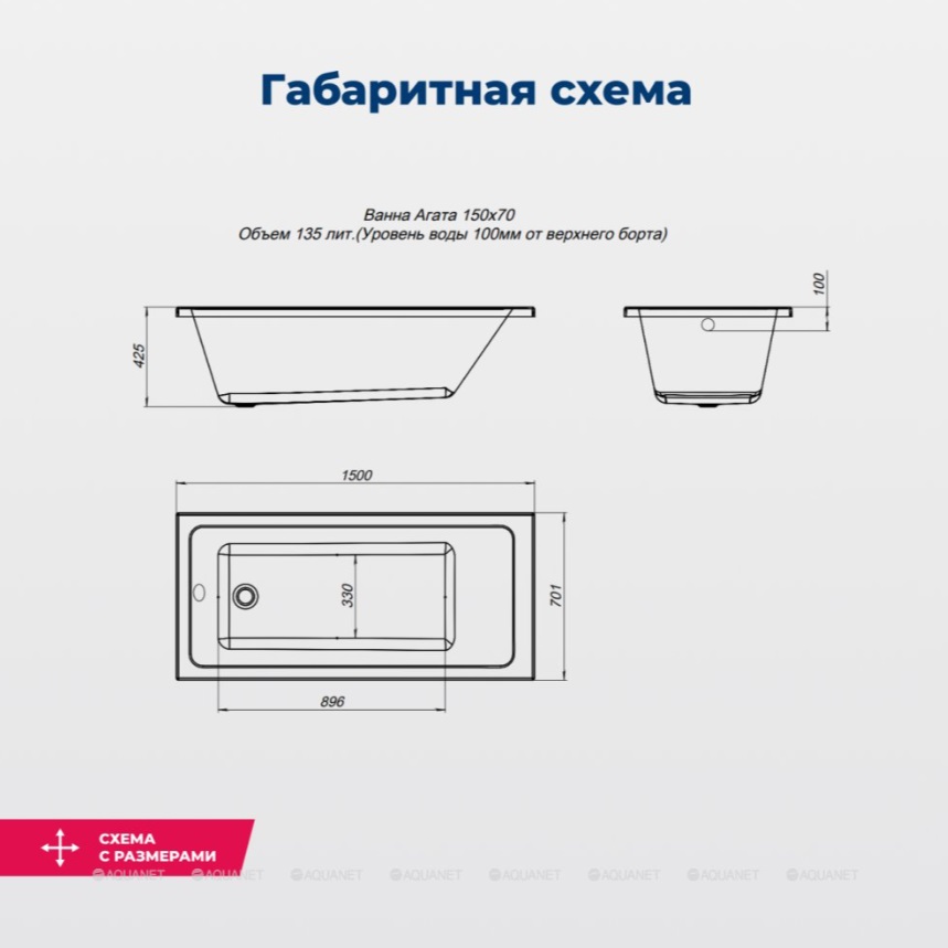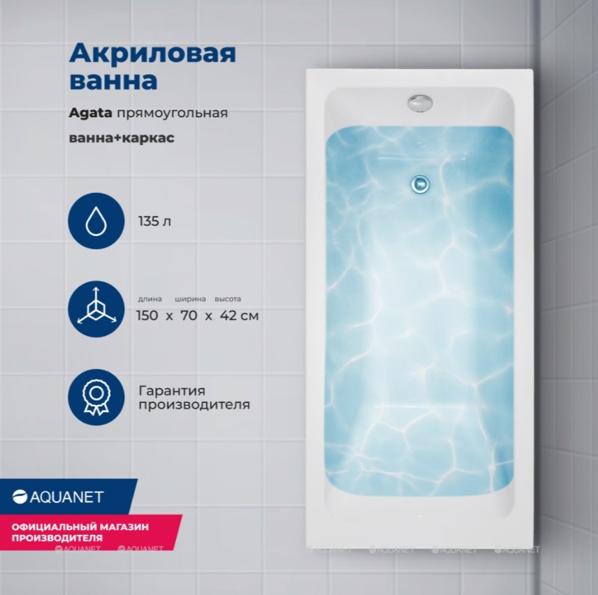 Акриловая ванна Aquanet Agata 150x70 |