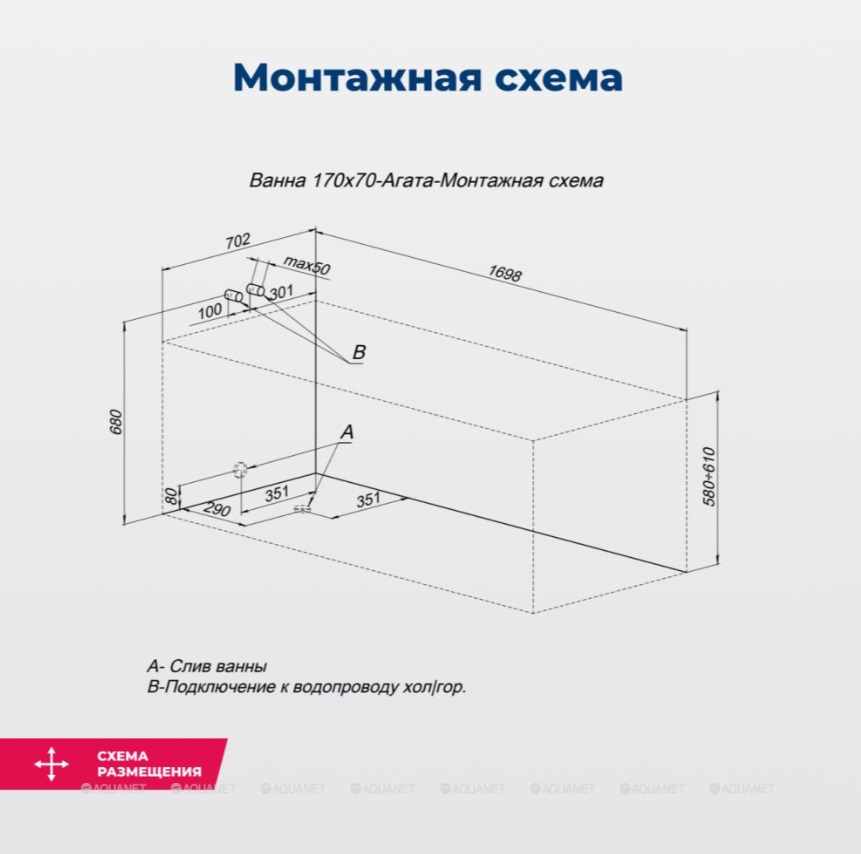 Акриловая ванна Aquanet Agata 170x70 |