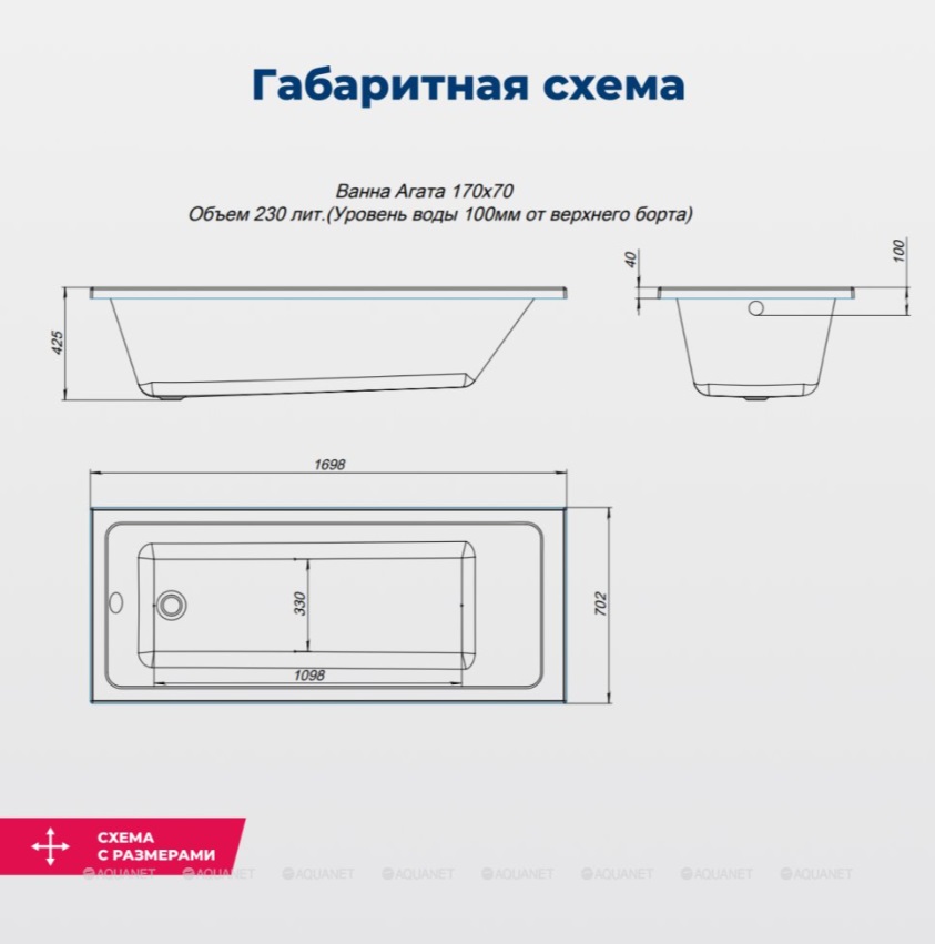 Акриловая ванна Aquanet Agata 170x70