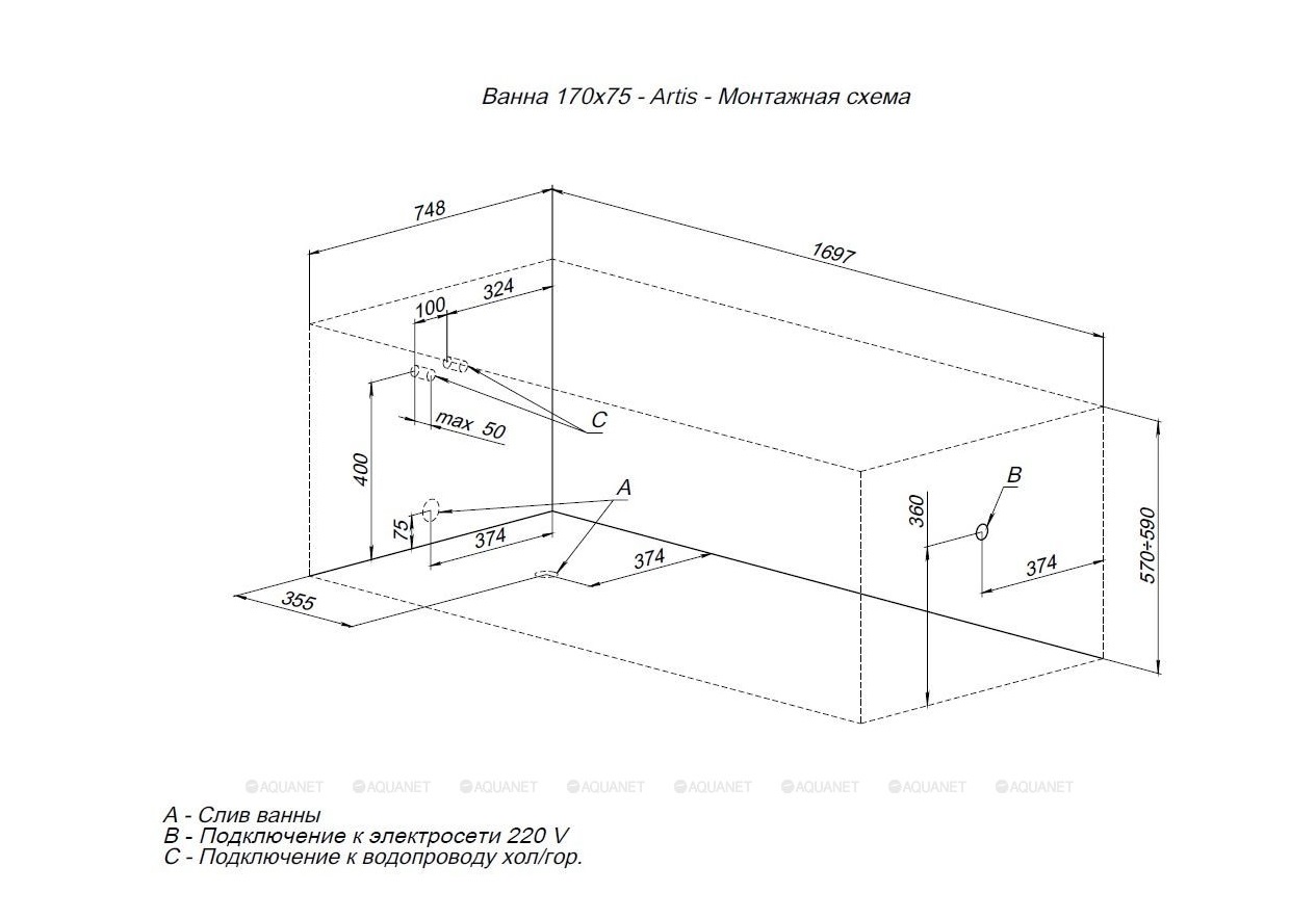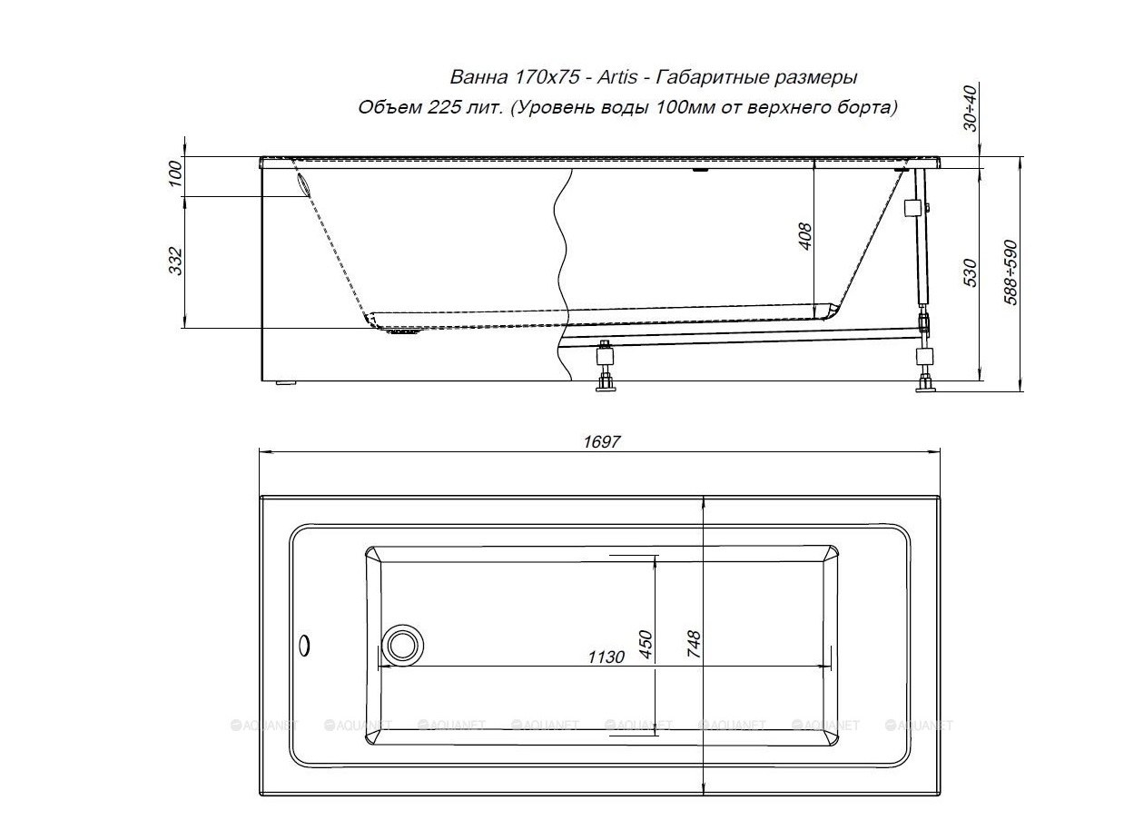 Акриловая ванна Aquanet Artis 170x75 |
