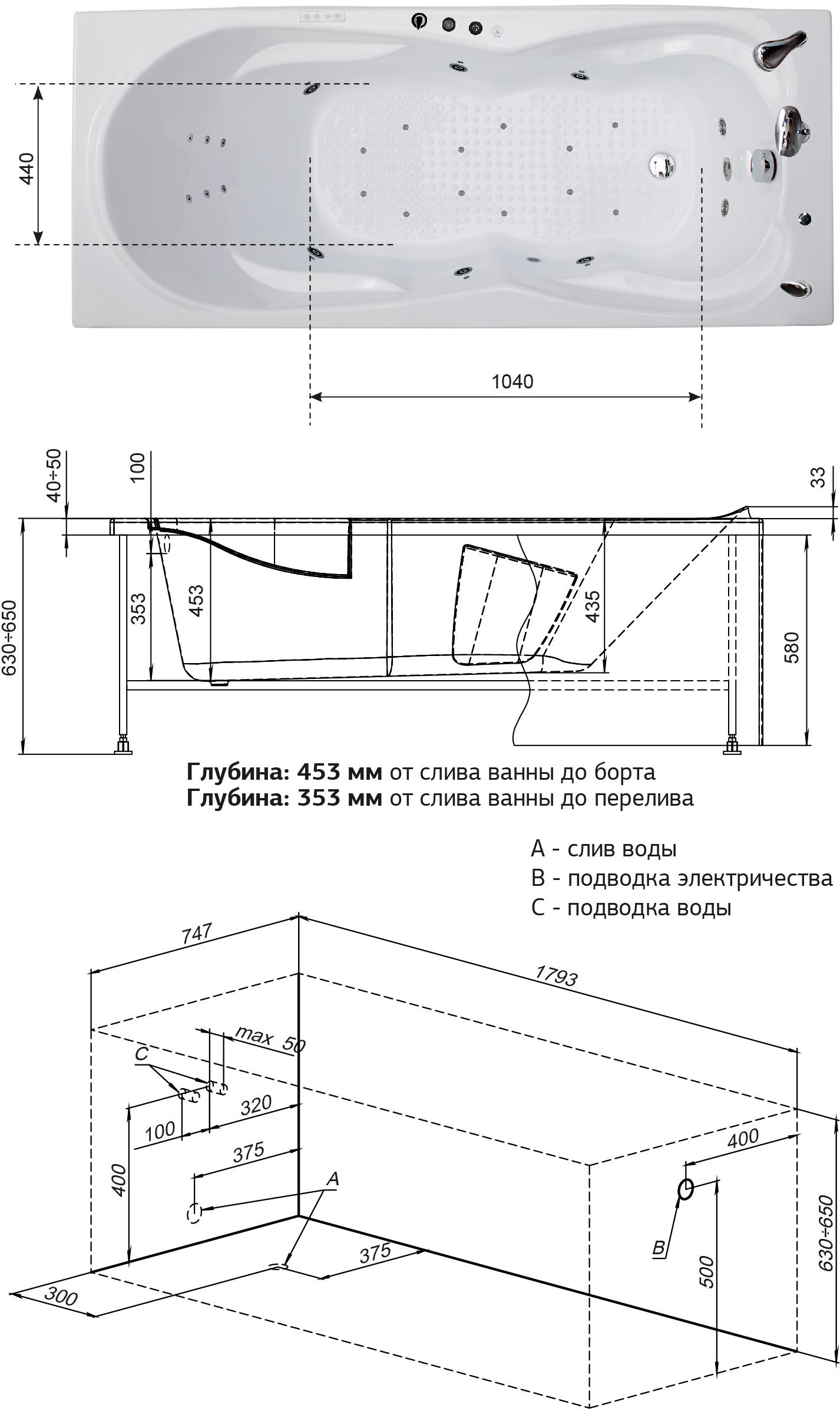 гидромассаж Aquanet "Турбо", 6 форсунок;