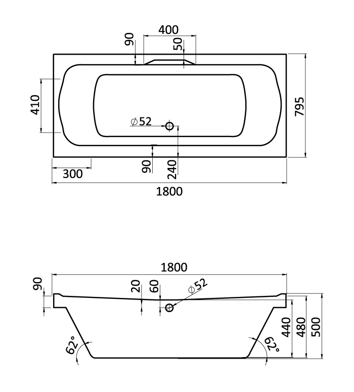 Акриловая ванна Santek Корсика 180x80 |