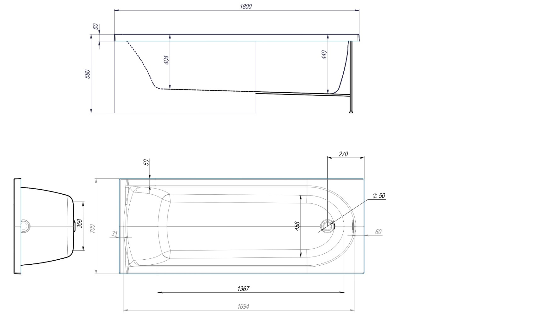 Акриловая ванна Timo Mika MIKA1870 180x70 |