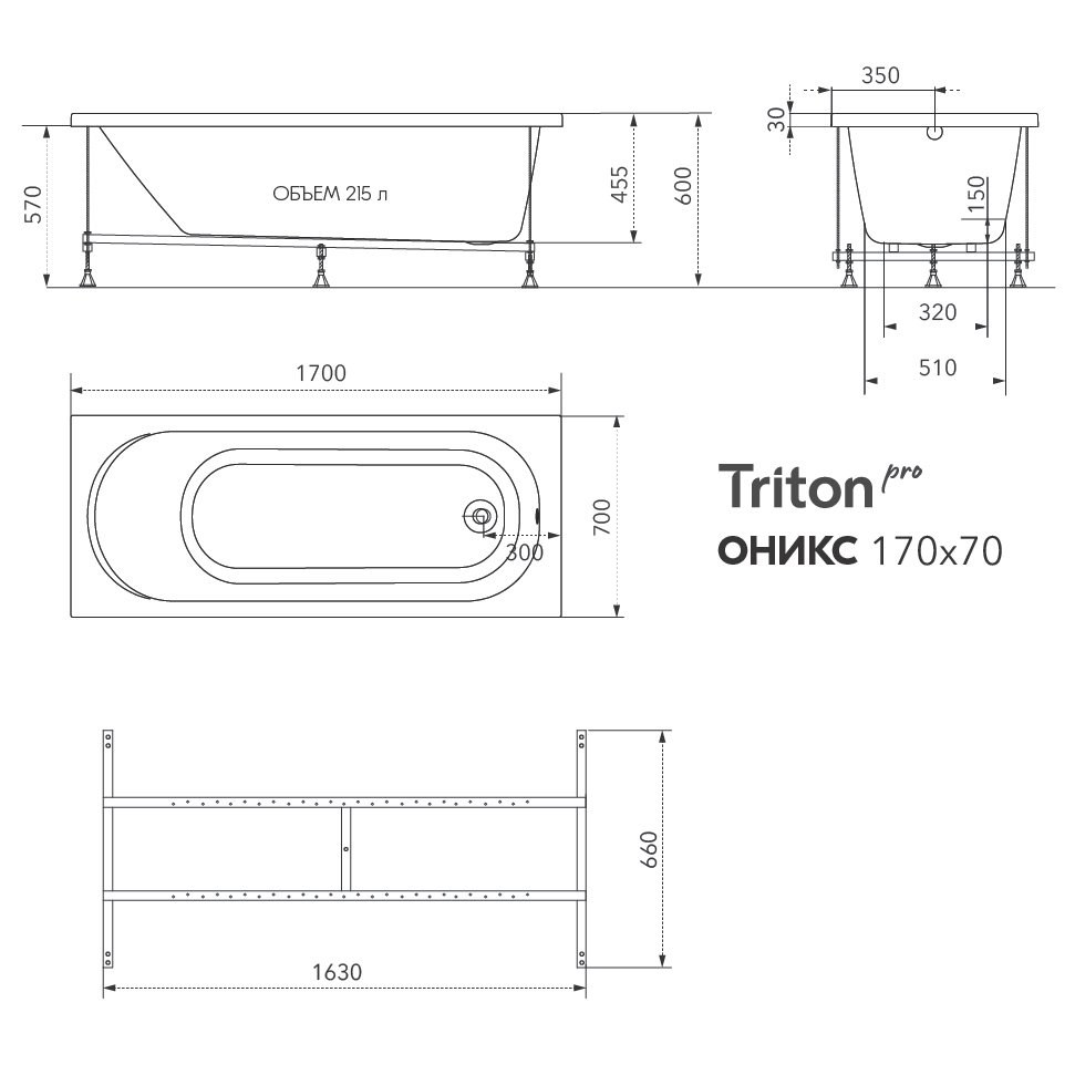 Акриловая ванна Triton Pro Оникс 170x70 |