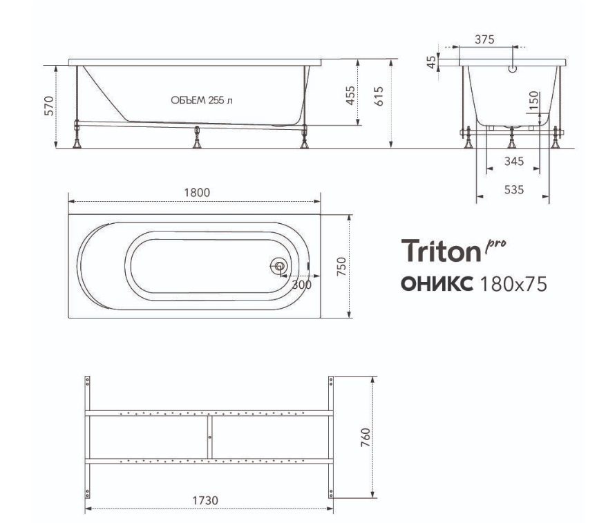Акриловая ванна Triton Pro Оникс 180x75 |