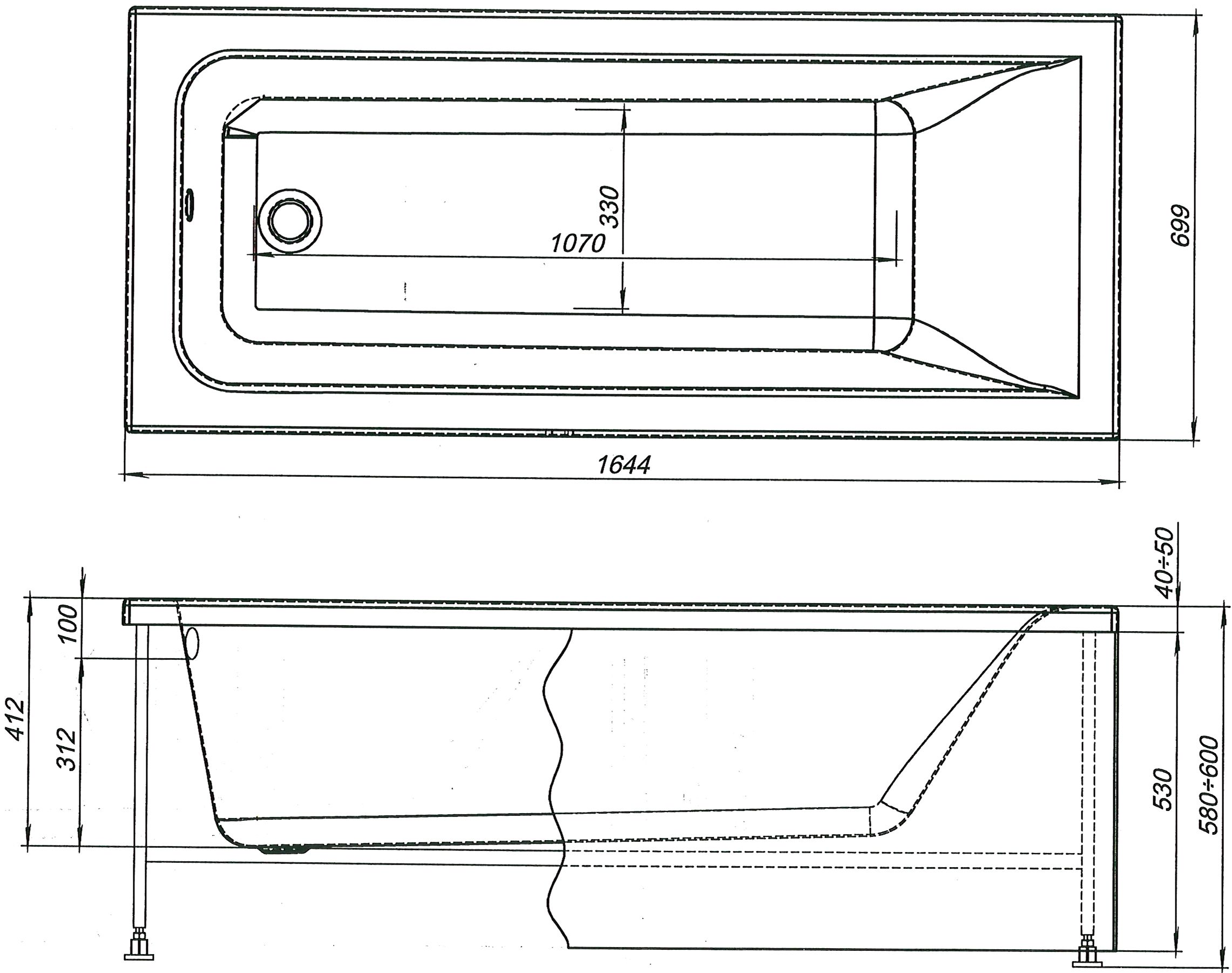 Акриловая ванна Aquanet Bright 165x70