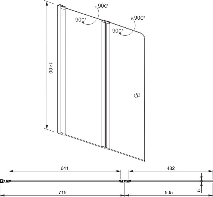 открывание шторки как внутрь ванны, так и наружу.