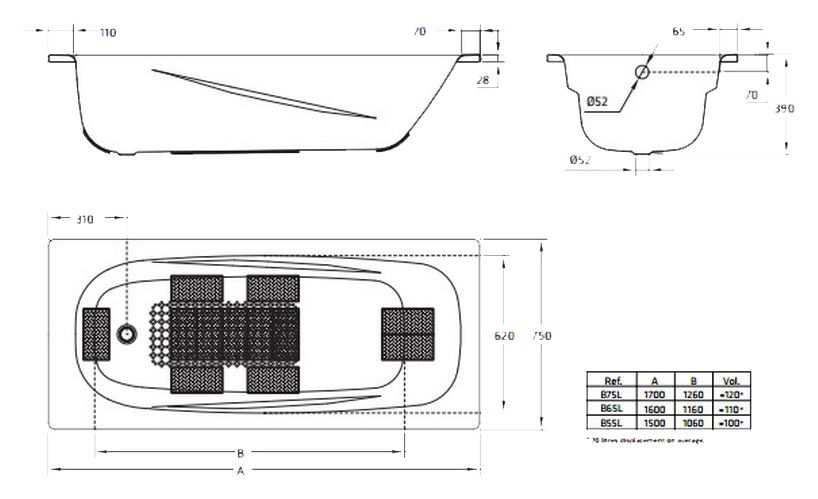 Стальная ванна BLB Anatomica B75H handles 170x75 |