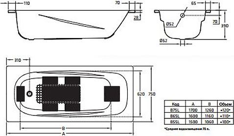 Стальная ванна BLB Anatomica B75L 170x75 |