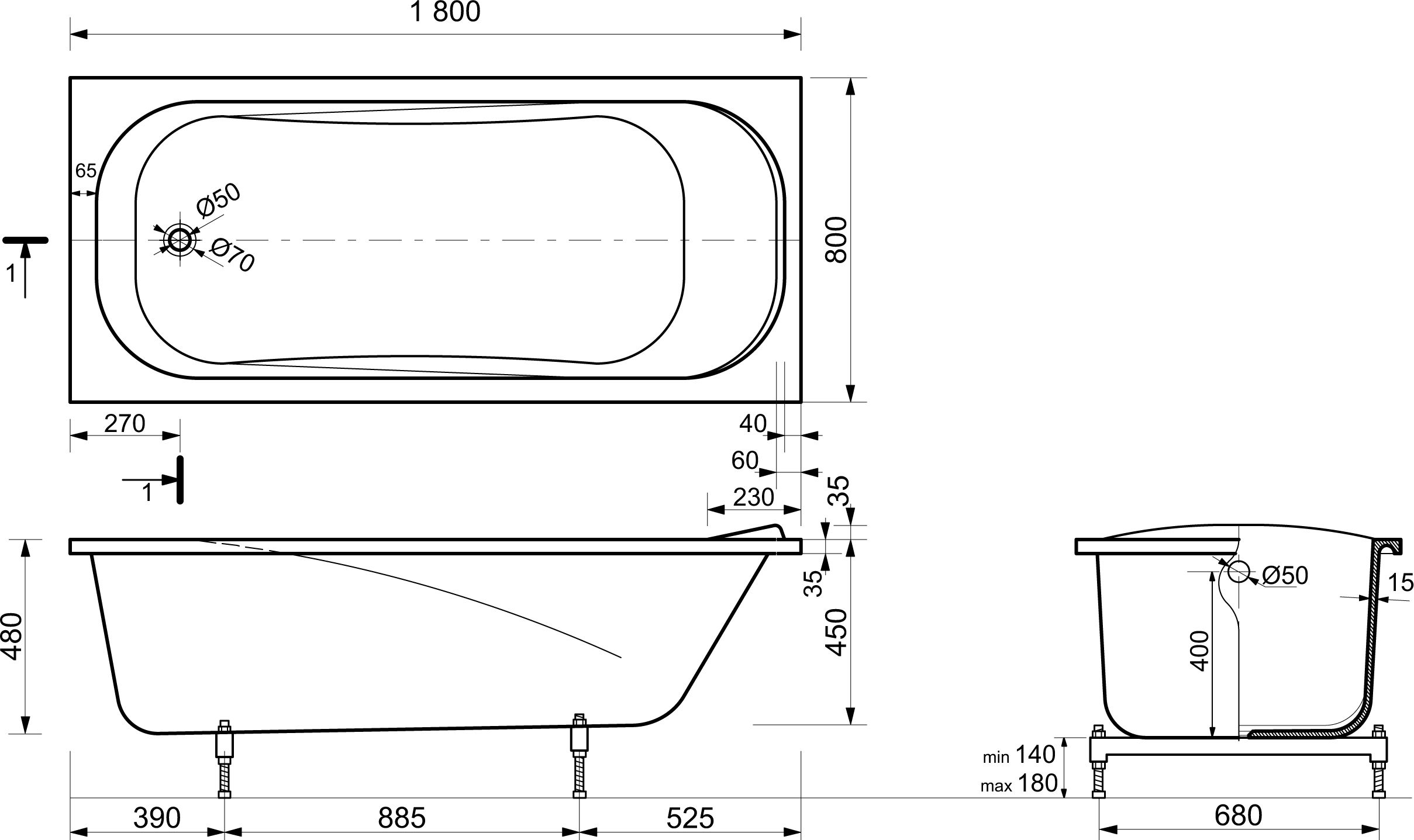 Ванна из искусственного камня Эстет Альфа 180x80 |