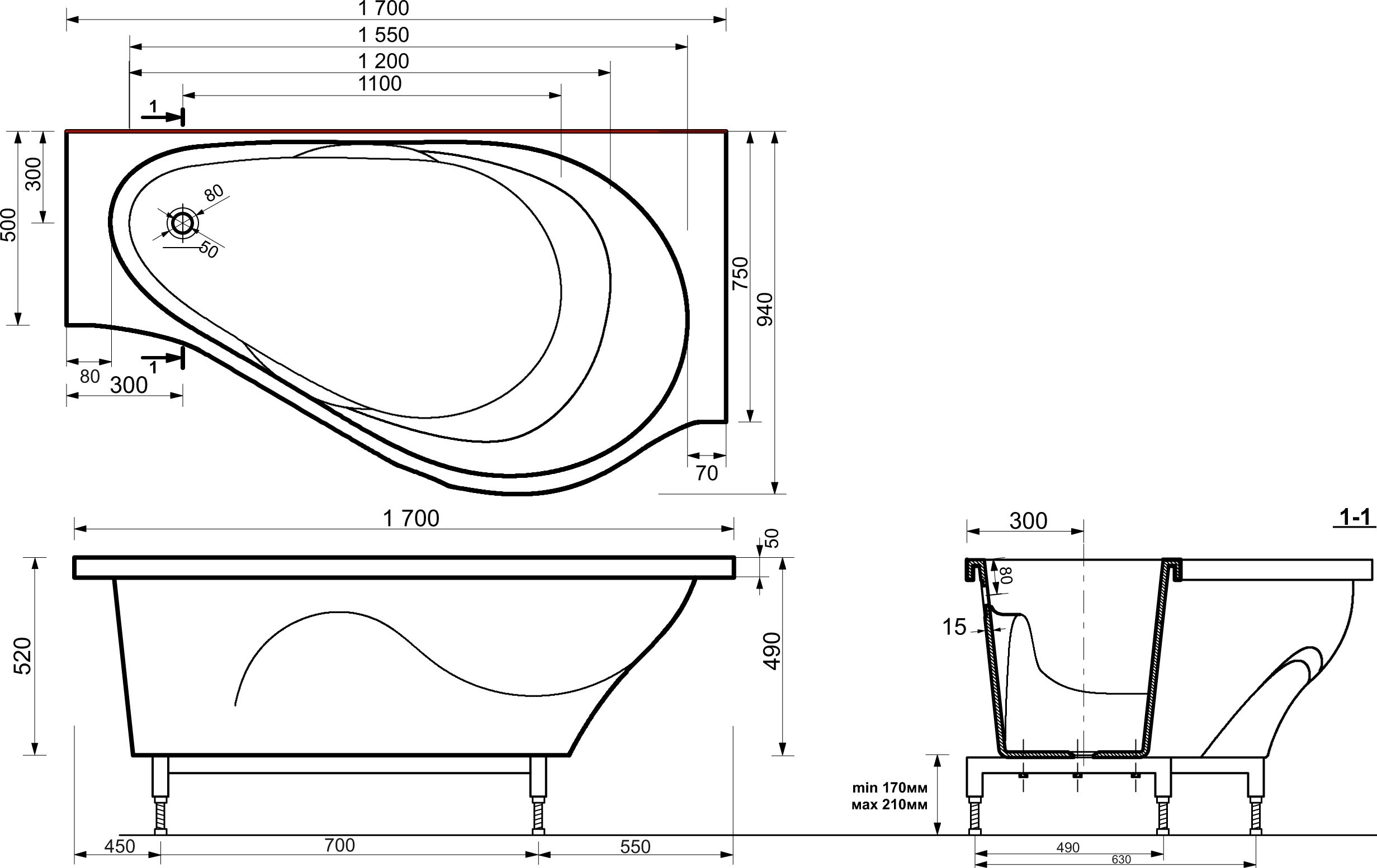 Ванна из искусственного камня Эстет Грация 170x95 R |
