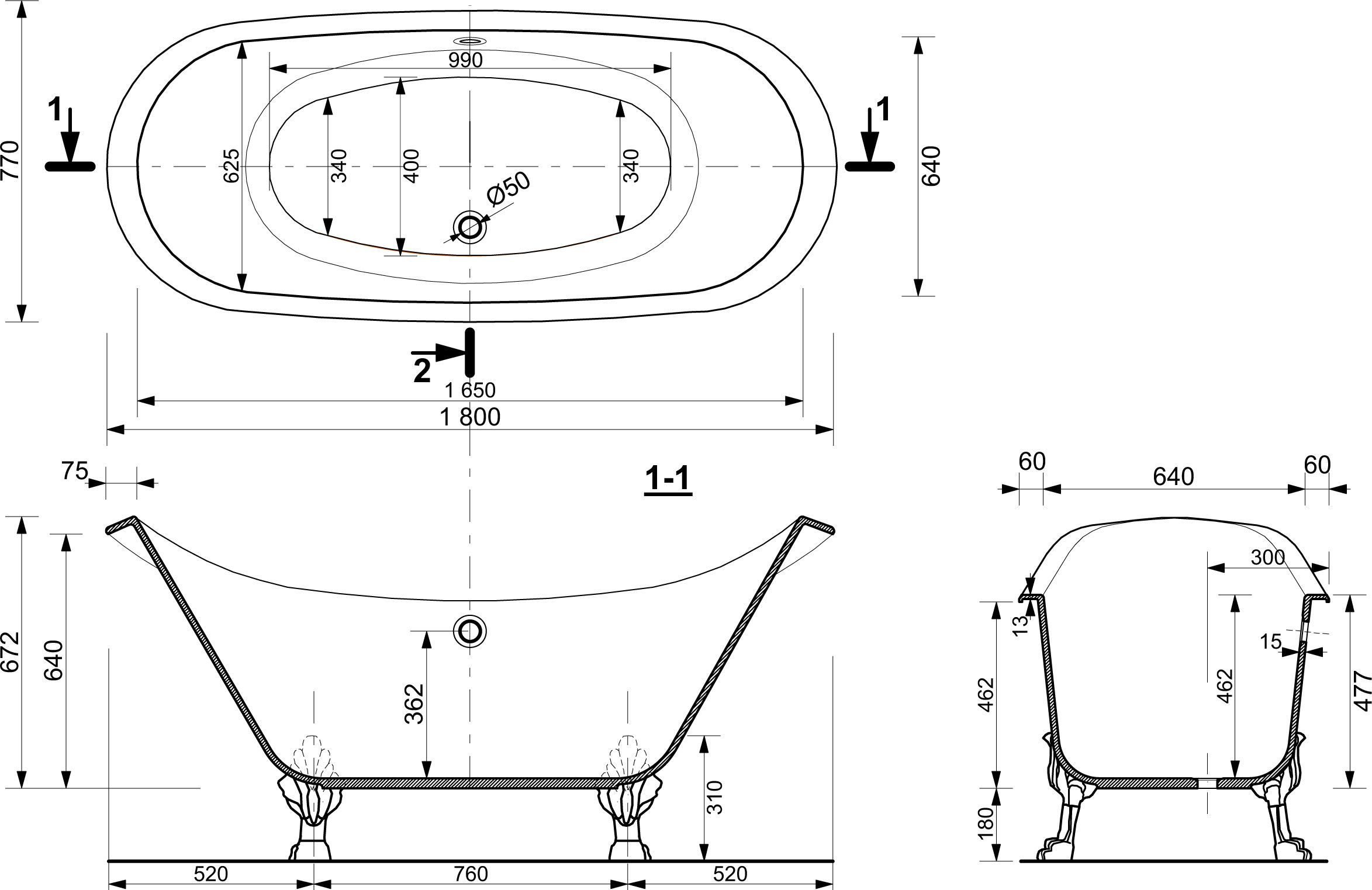 Ванна из искусственного камня Эстет Скарлетт 180x75